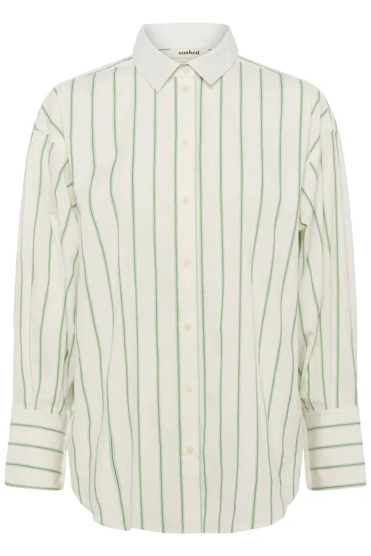 Noelle Striped Buttondown in Vibrant Green + White Stripes