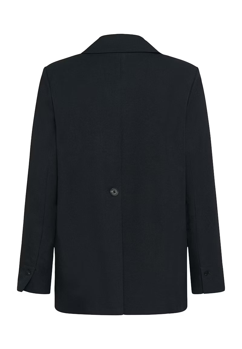 Single-breasted blazer with structured straight fit, notch lapels and two-button closure. Features front flap pockets, long sleeves and tailored details for a clean, confident silhouette.